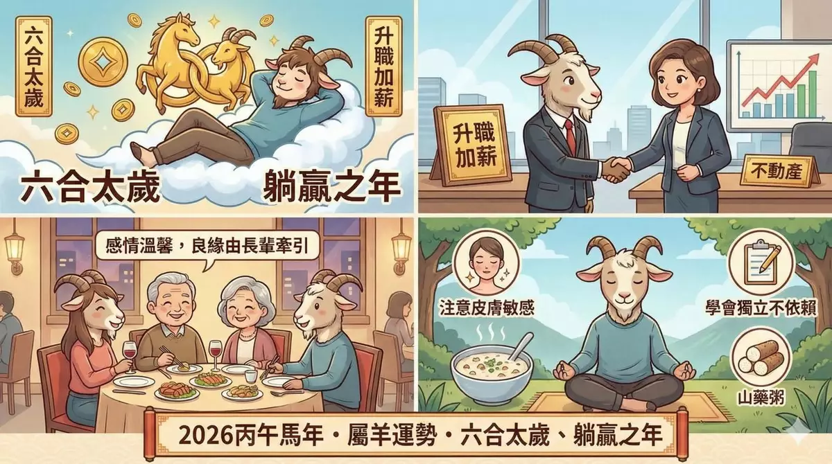 踏入2026丙午馬年,對於屬羊的來說,今年是「六合太歲」之年,午未相合,代表全年福氣拉滿,運勢是十二生肖當中數一數二的好!