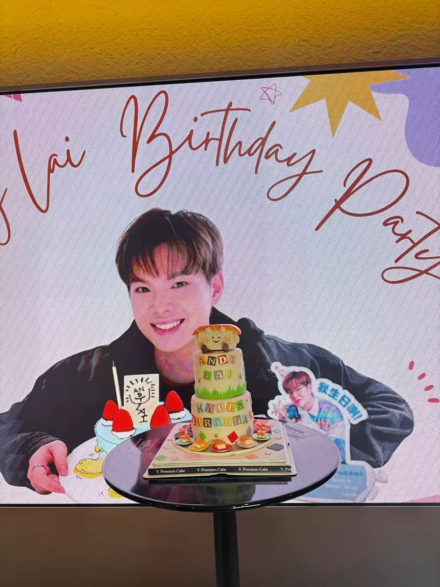 生日會上當然不少得fans送的生日蛋糕,而且十分有「心思」,原來是一個「三文魚雙層蛋糕」!Andy見到即時哭笑不得,原來是有段故,「之前同Dark(黃明德)同牙粉(曾傲棐)拍咗一條IG Reels,當時自己一開電話,成個mon都係三文魚,估唔到fans咁有心,整咗呢個三文魚造型嘅蛋糕!」味道如何?Andy就話:「真心未試過咁特別嘅蛋糕!啲三文魚係裝飾,食落冇乜味。成個蛋糕本身係好食嘅,但望住啲三文魚,硬係覺得成口都係三文魚味,哈哈。但係好感恩每一次嘅生日會,希望下年個蛋糕可以再突破啲!」