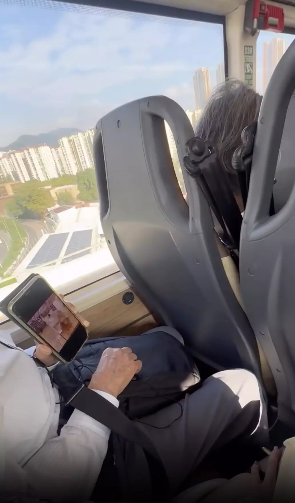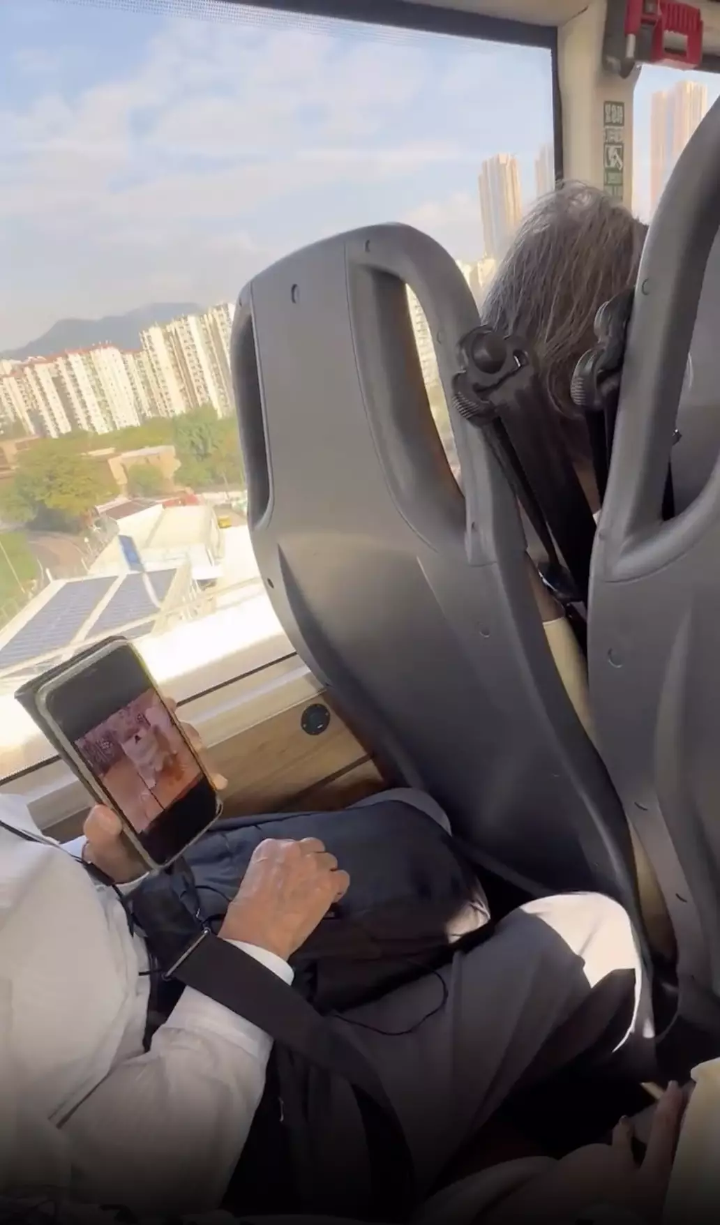 該名網友在社交平台Threads分享影片指,當時車上乘客眾多,她與兒子被迫需要分開坐下,而兒子坐在她前方一排的接近走廊座位。期間她無意間抬頭,發現坐在自己身旁近窗位置的陌生老伯,發現她的兒子不停回頭望向媽媽方向,似乎坐立不安,便「一直將自己電話開住畀佢睇」。