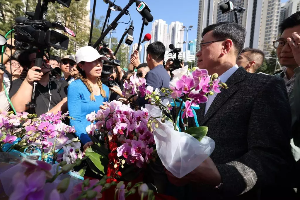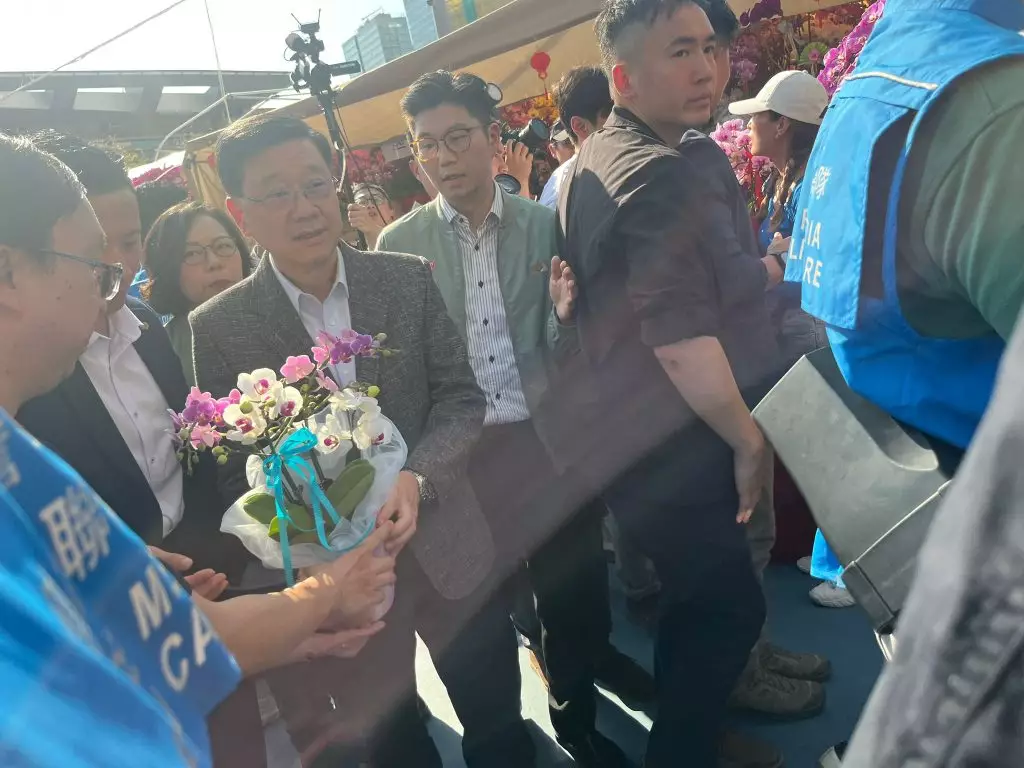 行政長官李家超到觀塘遊樂場年宵市場逛花市。巴士的報記者攝