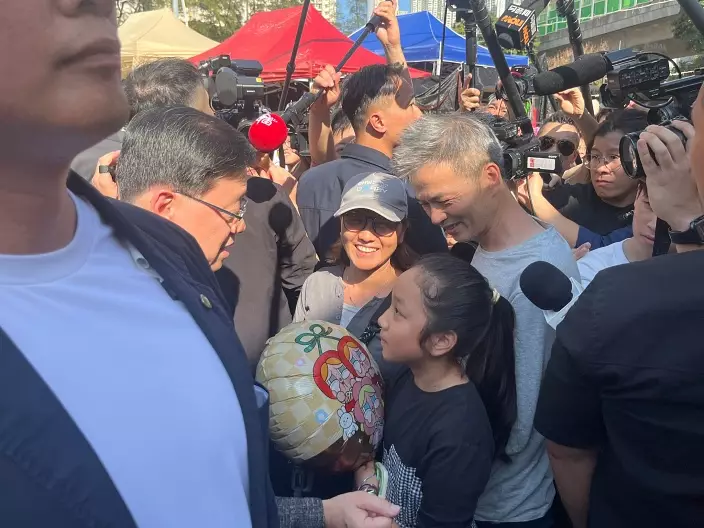 市民對李家超到訪十分熱情,期間更問小朋友有甚麼新年願望。巴士的報記者攝