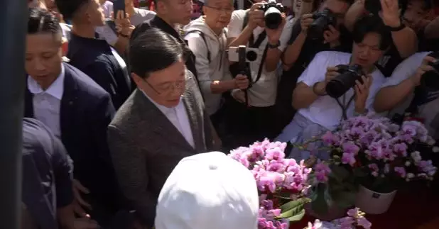 行政長官李家超,下午到訪觀塘的年宵市場,和市民交流,並購買銀柳、蘭花和五代同堂。