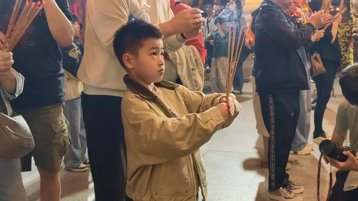 小朋友到黃大仙祠上香。巴士的報記者攝