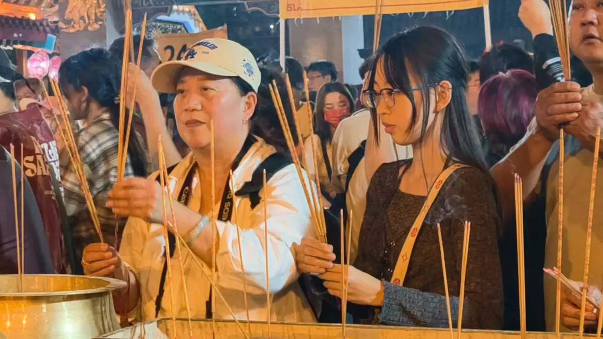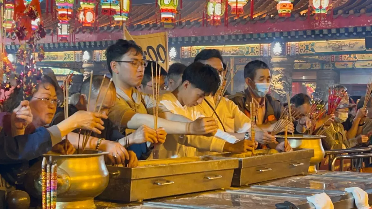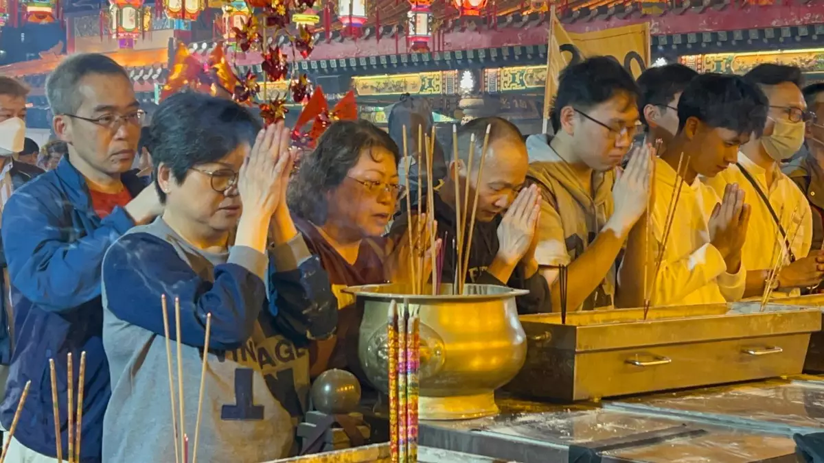 凌晨3點已到現場輪候的陳生,成功排到第一位,他笑言是因為「訓唔着」。今年「最熱除夕」,多區氣溫上升至28度或以上,陳生指「真係捱過來」,「從11點到四點,擔著把遮,濕嗮好辛苦,入夜就好一點。」因明天就飛回馬來西亞,因此想搶完頭炷香再回去。