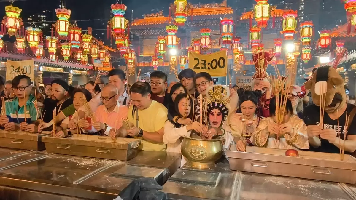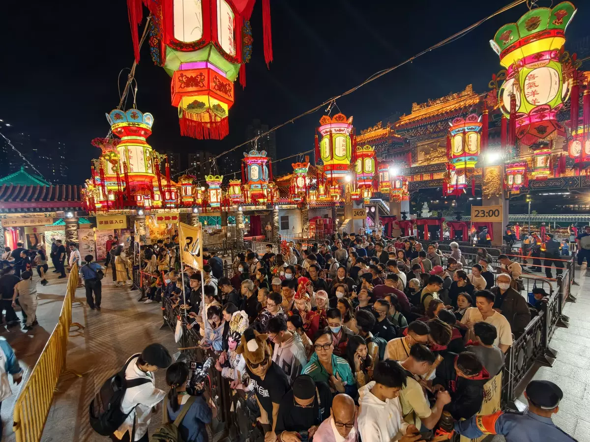 黃大仙祠晚上9時起通宵開放,供市民在大年初一入廟拜神,現場一如以往有善信提早到場排隊,不少人悉心打扮,希望能在子時搶到頭炷香。