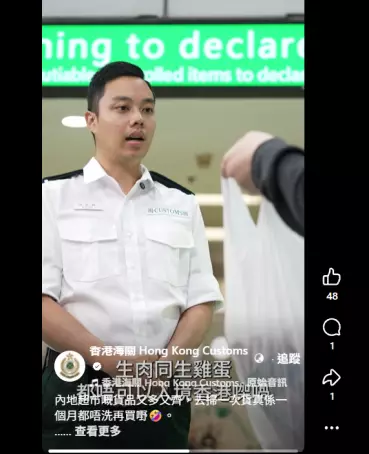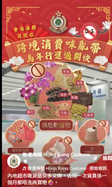 海關表示,若無許可證而帶受管制食物回港屬違法。海關FB