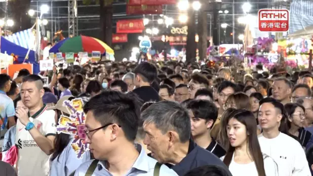 全港14個年宵市場通宵開放至今早7時,最大規模的維園年宵市場,踏入馬年後,繼續有大批市民排隊入場,午夜過後人頭湧湧。食環署網頁顯示,維園午夜人流情況為紅燈,代表維園非常擠迫,排隊入場時間會十分長。