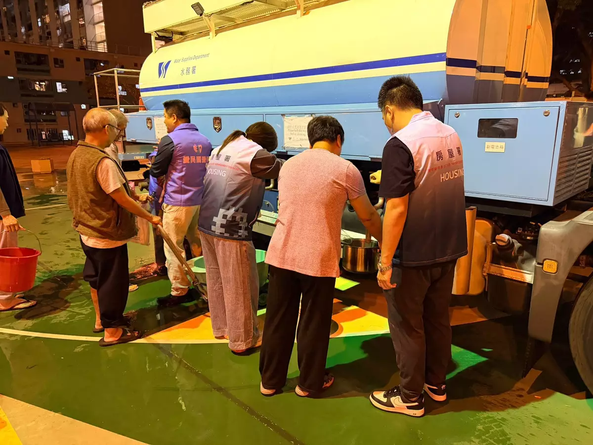 愛民邨爆水管,市民到水車取水。房屋署FB圖片