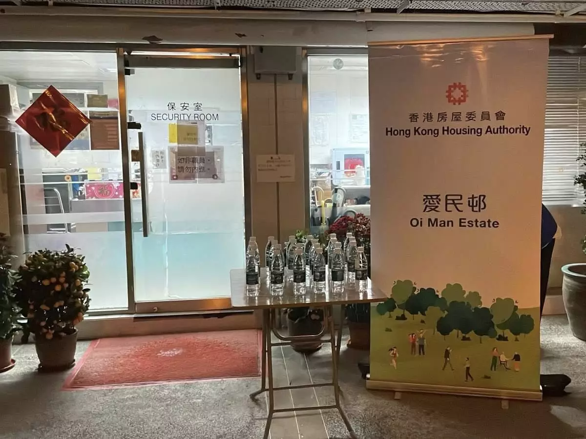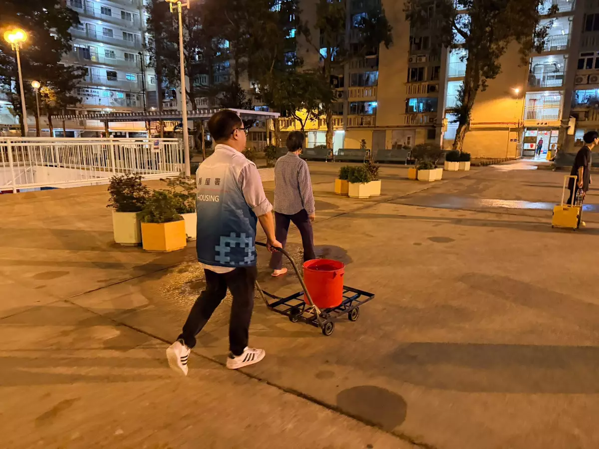 愛民邨爆水管,房署在場派飲用水。房屋署FB圖片