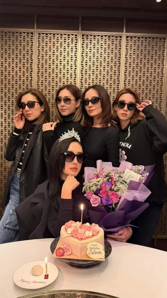 二月壽星女李施嬅(Selena)獲胡說八道會一班好姊妹為她慶生,齊齊擺甫士合照留念,非常快樂。