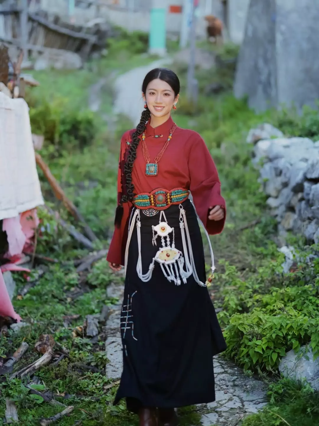35歲的蔡思貝(Sisley)近日去了四川九寨溝旅行,並換上傳統服飾體驗當地風情,她在IG晒出靚靚寫真照,可見她一身紅黑配色的藏族傳統服飾,搭配精緻的藏式辮子、民族飾品,整個造型充滿異域風情,而且英氣十足!