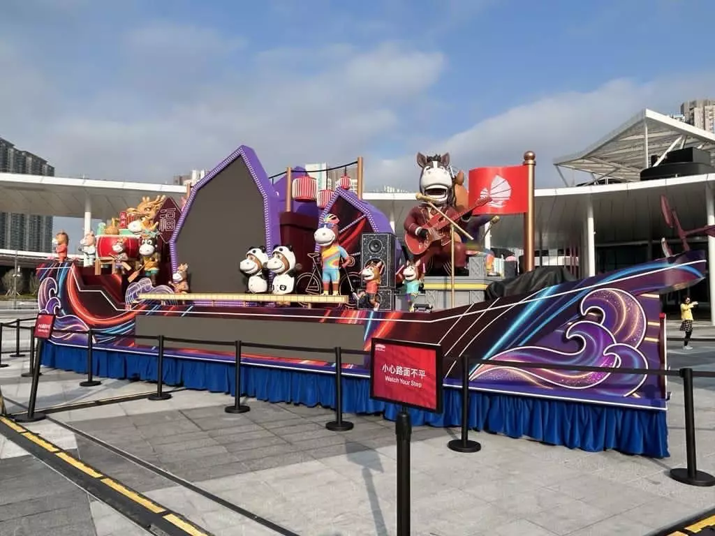 由年初二至年初十(2 月 18 至 26 日),市民及旅客可於啟德體育園內三大指定位置,包括水連天、中央廣場及渡行徑,近距離欣賞 8 輛特色花車,細味每一處創意巧思與工藝細節。入夜後花車亮燈,流光溢彩,打卡位全面升級,日夜各有不同風景。