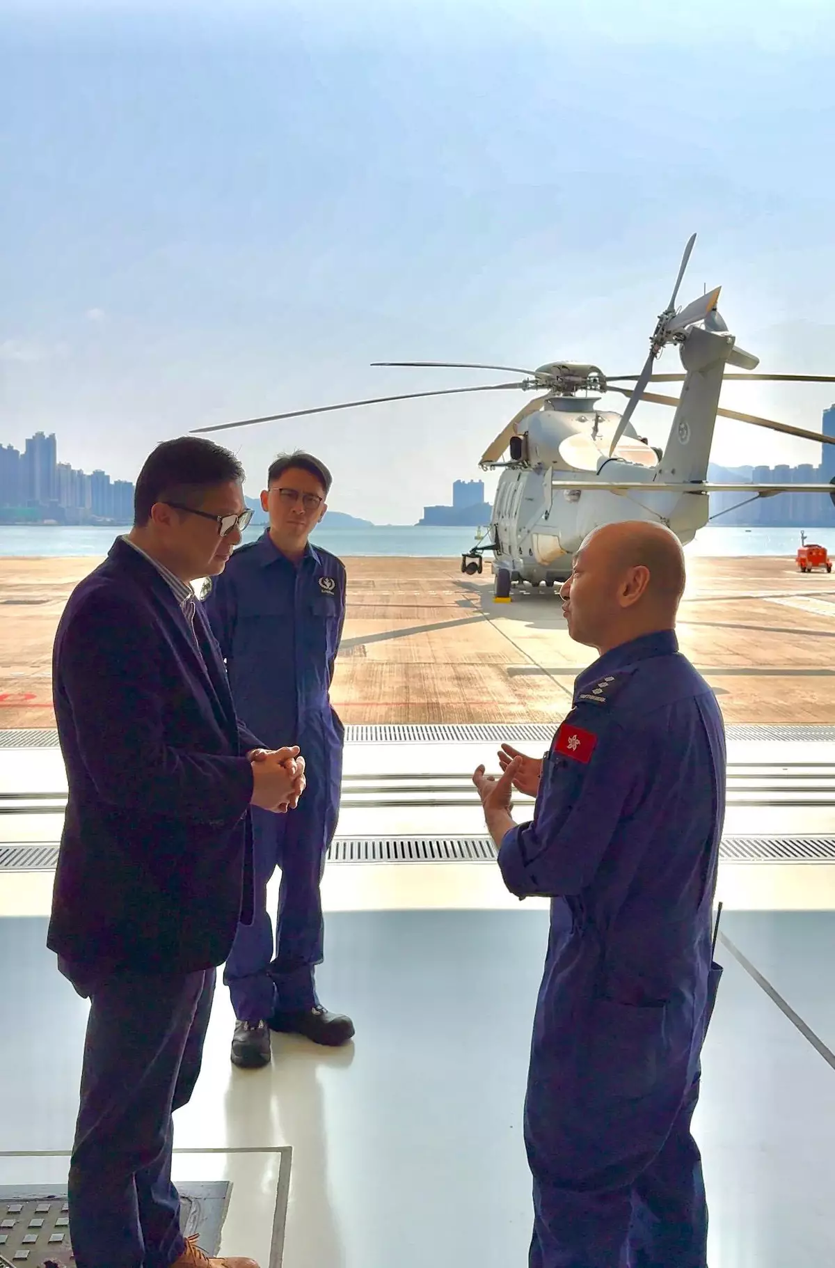 鄧說他隨再到啟德消防局和飛行服務隊分部探班,感謝他們24小時候命,一旦有緊急事故,消防車同直升機隨時出動,守護生命財產。