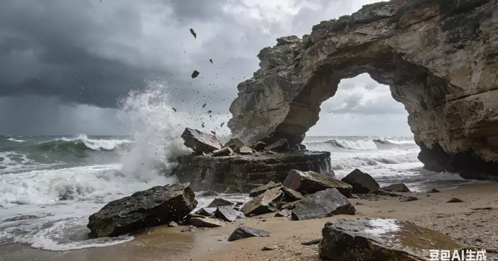意大利著名海蝕拱門情人節當天倒塌。AI生成圖