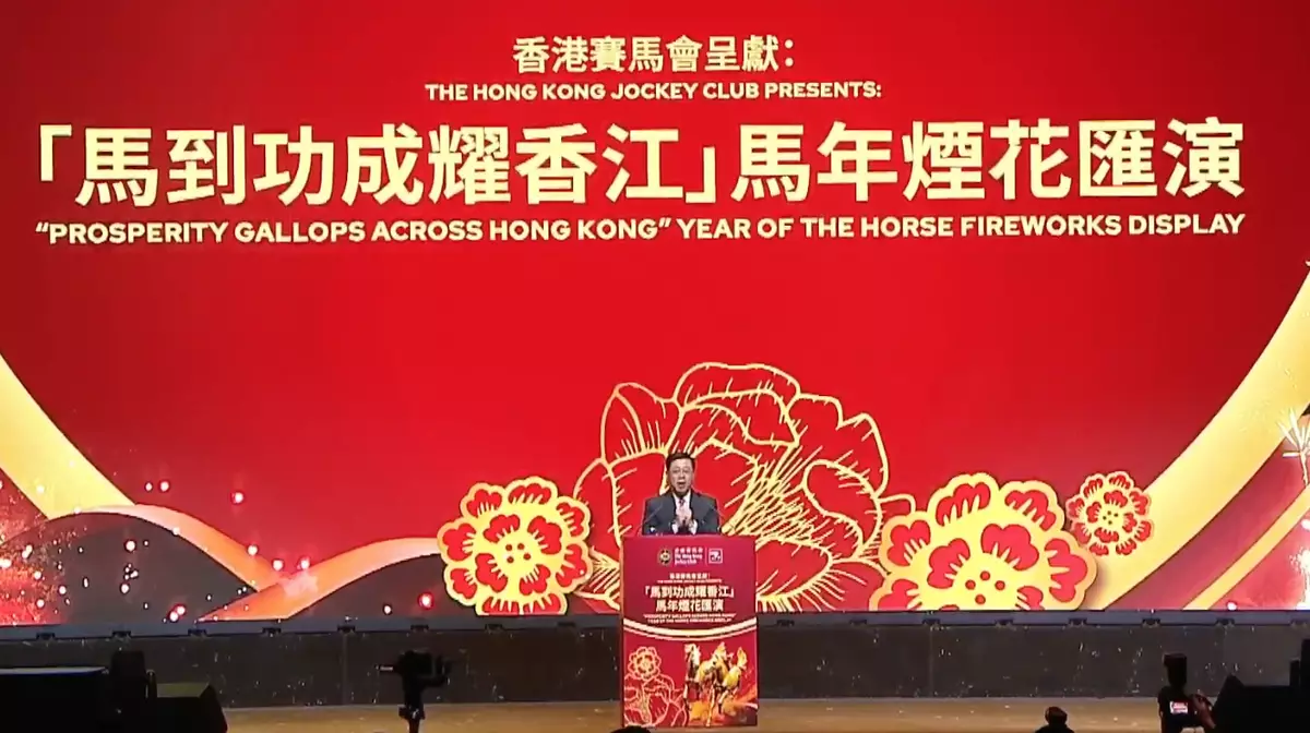 煙花匯演舉行前,贊助商賽馬會在灣仔會展中心舉行儀式,李家超致辭時說,駿馬昂首,辭舊迎新,今年是國家十五五規劃開局之年,香港會馬不停蹄、改革求進,主動對接十五五規劃,積極融入國家發展大局,繼續發揮香港在一國兩制下背靠祖國、聯通世界的獨特優勢,為國家高質量發展貢獻香港力量。