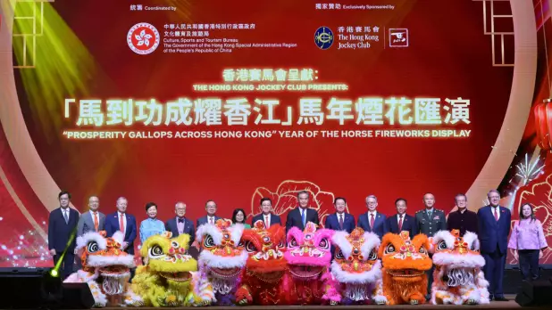 煙花匯演舉行前,贊助商賽馬會在灣仔會展中心舉行儀式,李家超致辭時說,駿馬昂首,辭舊迎新,今年是國家十五五規劃開局之年,香港會馬不停蹄、改革求進,主動對接十五五規劃,積極融入國家發展大局,繼續發揮香港在一國兩制下背靠祖國、聯通世界的獨特優勢,為國家高質量發展貢獻香港力量。