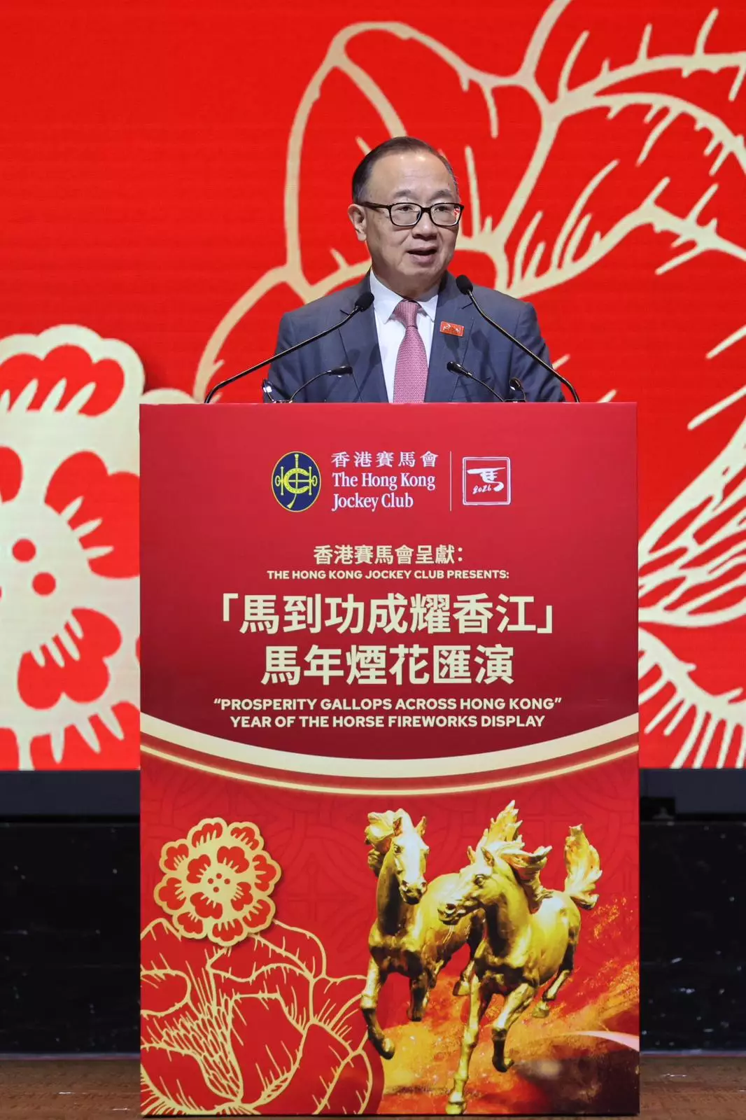 馬會主席廖長江表示,馬年對馬會而言別具意義。香港的世界級賽馬,以及持續發展的馬術運動,令我們引以為傲;馬會推出馬年系列活動,包括贊助大年初二煙花匯演,頌揚人馬的深厚情誼,以及賽馬運動多年來對香港持續發展的貢獻,並與市民和旅客共迎新春,「多年來,馬會秉持致力建設更美好社會的宗旨,在提供世界級賽馬及馬匹運動娛樂的同時,馬會協助香港特區政府打擊非法賭博,並透過其獨特的綜合營運模式,將博彩需求轉化為重要的經濟貢獻,帶來就業機會、稅款及慈善捐款。如今,馬會已躋身全球最大的慈善捐助機構之一,由始至終以服務香港為目標。這一切的成就,都離不開『馬』。」