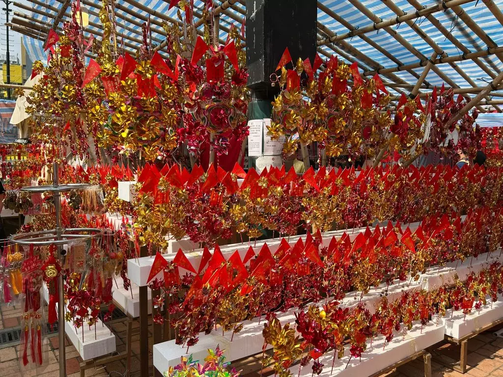 在車公廟出口處亦設有新年市集,售賣一系列新年物品,供前來參拜的善信們,將現場喜慶的氛圍帶回家中,延續新年的福氣和好運。