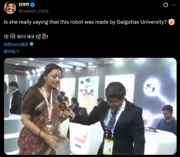 報道稱,印度加爾戈蒂亞斯大學傳播學教授辛格(Neha Singh)接受國營電視台DD News採訪時,聲稱展出的機械狗「獵戶座」(Orion)是該校卓越中心自主研發。在社群媒體X上的影片也顯示,一位女性在會場介紹稱「獵戶座」機械狗時,聲稱是該大學團隊自主研發的。