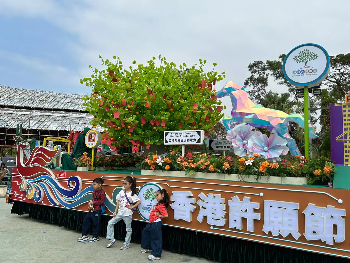 現場精心佈置的新年特色裝飾,讓人感受到濃郁的年味。在年初一的花車巡遊中亮相的林村主題花車,亦在現場展出,供市民遊客拍照留念,重溫巡遊慶典的精彩瞬間。