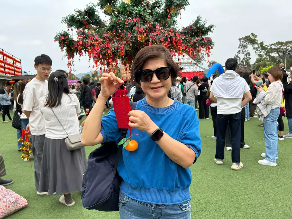 本地市民甄小姐表示,在大年初三來到林村感受熱鬧的節日氛圍,感到十分開心,看到許多市民都同她一樣,將新年的祝願寫在寶牒上,並拋向許願樹,這樣富有儀式感的畫面,令她感到滿滿的新年氣息,她衷心希望大家許下的心願都可以在馬年順利成真,所願皆所得。