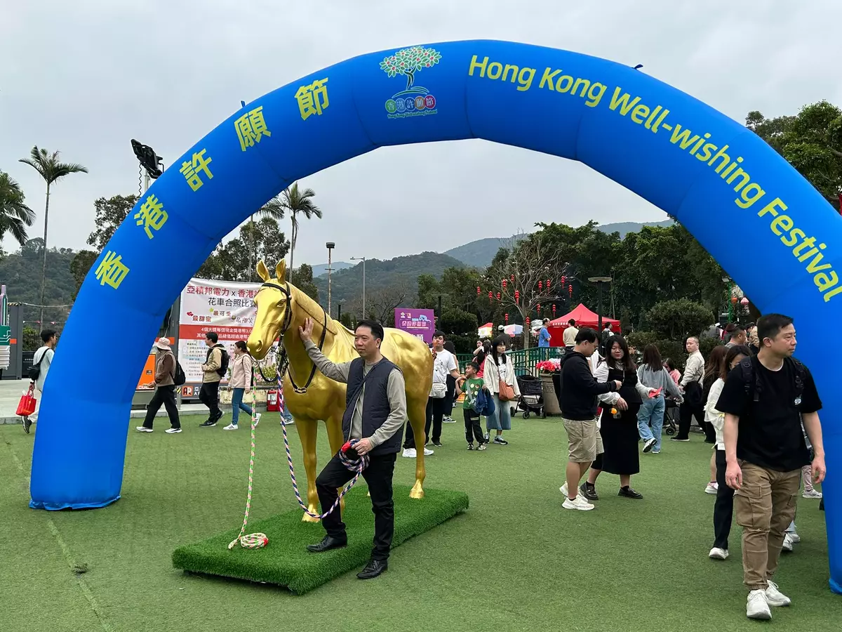 許願節現場設有多處拍照打卡點,供市民遊客留下新年美照,定格馬年新春的喜悅與幸福。其中,「金馬」和「駿馬」造型的馬匹雕塑,更是讓市民遊客得以體驗「拉頭馬」的樂趣,收獲滿滿的新年好彩頭。