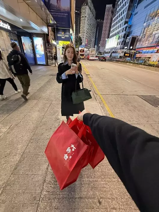 吳千語與富三代老公施伯雄婚後生活甜蜜,兩人不時於社交平台放閃。適逢農曆新年,二人被網民野生捕獲一齊出街辦年貨。相中所見,施伯雄雙手拎住三大袋紅色包裝年貨,全程化身「人肉行李架」,而吳千語則輕鬆拎住手袋撳電話,網民笑言:「呢啲就係馭夫有術!」