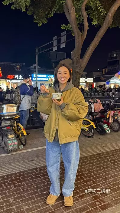 大年初二,高Ling更去逛夜市,感受金陵古都獨有的人間煙火氣。她大啖大啖狂掃串燒、街頭小食,完全放開警戒,盡情享受過年氣氛,最後當然唔少得來一碗南京經典甜點「赤豆桂花小元宵」,寓意團團圓圓。