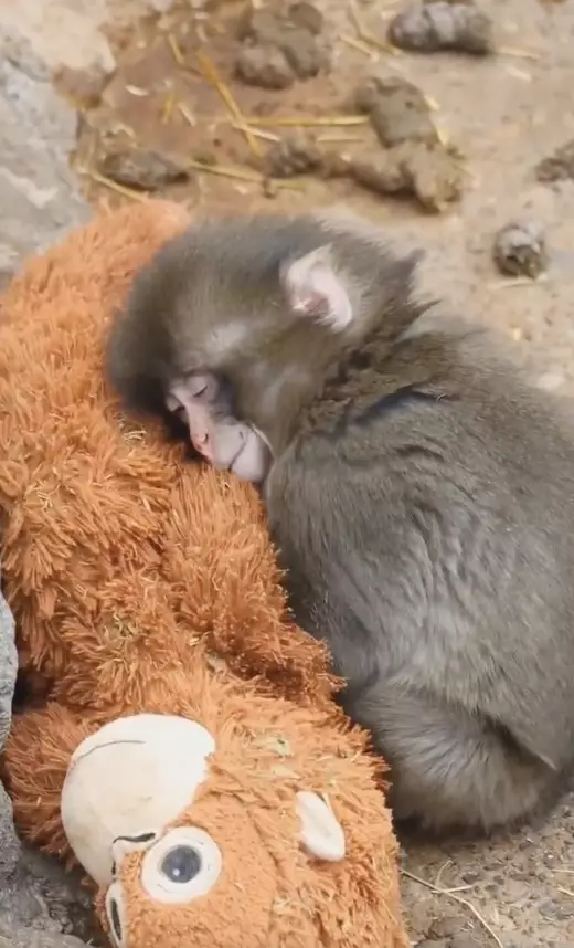 子ザルのパンチくん、ママぬいぐるみの中で眠るのかわいすぎ#がんばれパンチ #市川市動植物園