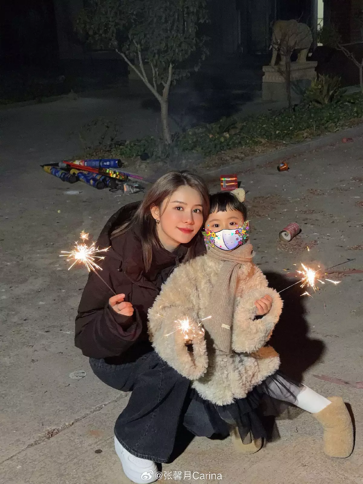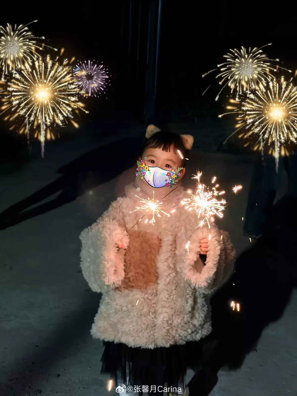張馨月在社交平台晒出一家三口的過年照,原來林峯陪老婆帶囡囡回江蘇娘家過年,相中可見,一家三口一同放煙花,5歲的Luna頭戴貓耳頭飾,穿著毛絨絨的外套,打扮相當可愛!而張馨月今次只用口罩圖案遮着囡囡的半張臉,所以睇得出Luna眉眼繼承父母優點,眼仔碌碌,又擁有長長的眼睫毛,而且笑容明媚,顏值相當高!