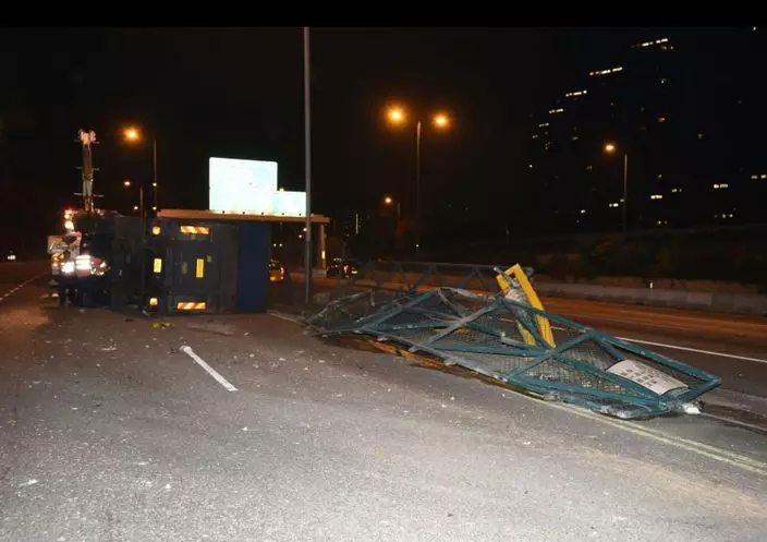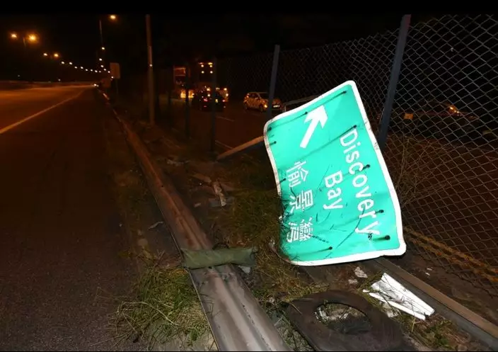 凌晨1時許,一部運載電子零件的中型密斗貨車,沿北大嶼山公路行駛,準備前往機場落貨,當貨車駛至映灣園對開時,司機報稱因為閃避切綫車輛而失控,撞毀路邊約100米鐵欄及路牌。