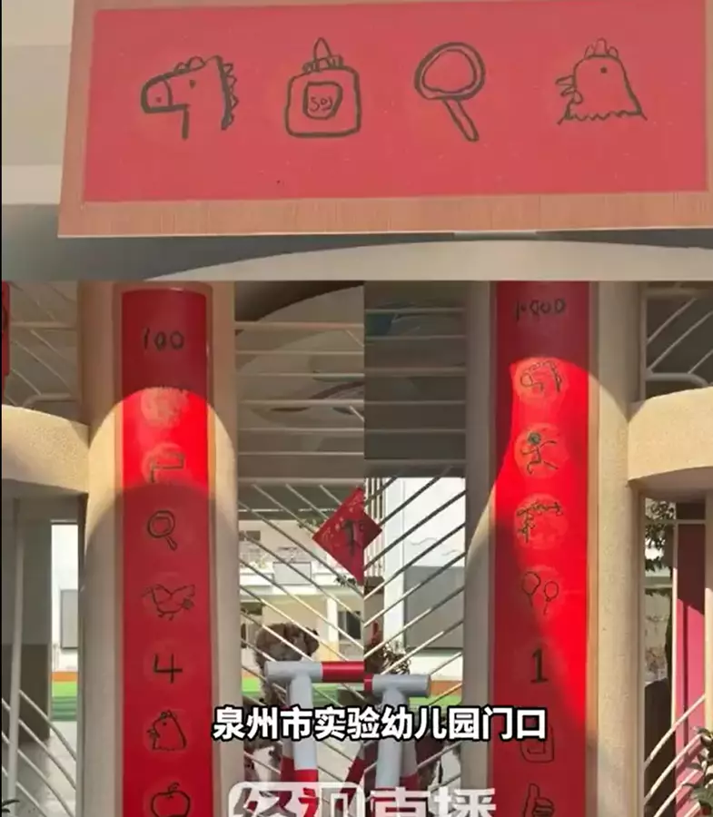 福建泉州的一所幼稚園近日在門口張貼了一幅別具創意的揮春,吸引了許多遊客拍照並在社交平台上引起了熱烈討論。