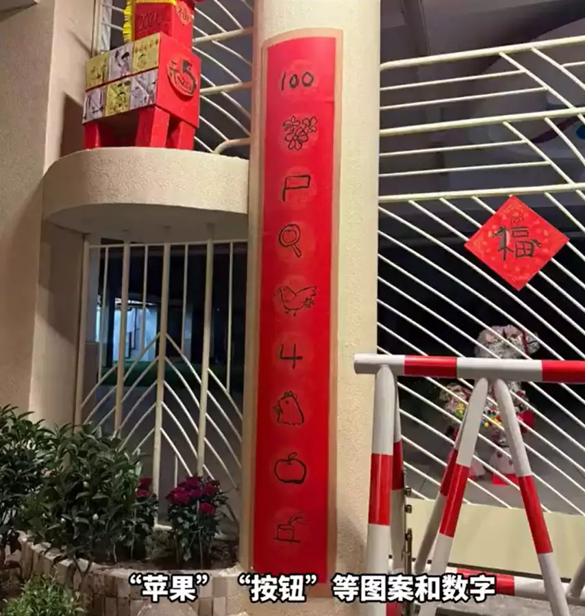福建幼稚園門口驚見「神秘揮春」。微博圖