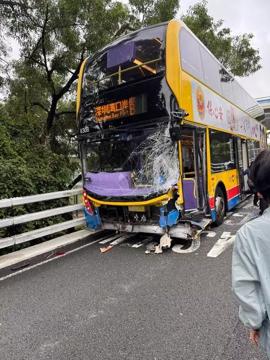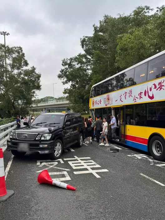 深圳灣公路大橋下午發生車禍。一架B3X路線城巴懷疑收掣不及,撞上一輛因「死火」而停在路中的SUV私家車,導致巴士上3名乘客及私家車司機受傷。