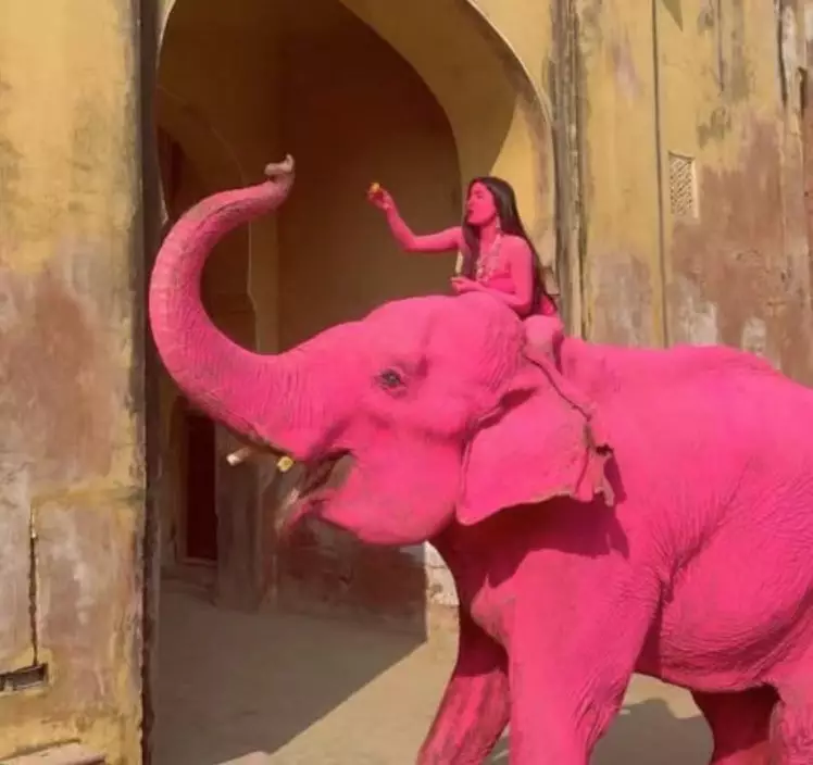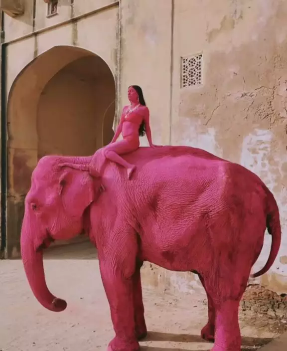 印度母象被塗滿粉紅顏料拍照數月後死亡,俄女攝影師陷虐待動物風波。IG圖片