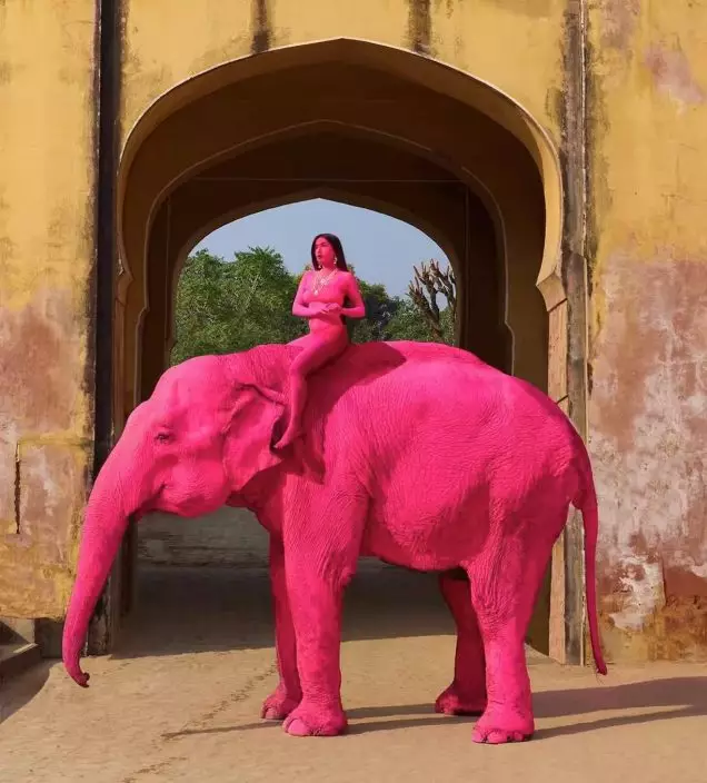 綜合外媒報導,俄羅斯一名女攝影師布魯列娃(Julia Buruleva)於去年11月前往印度齋浦爾進行藝術考察,之後在社交平台上發布一系列以粉紅大象為主題的「人體藝術照片」。照片曝光後迅速引起關注,同時也招來不少動物保護人士批評。