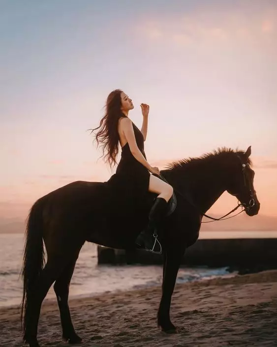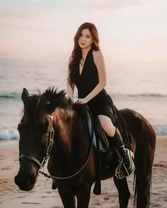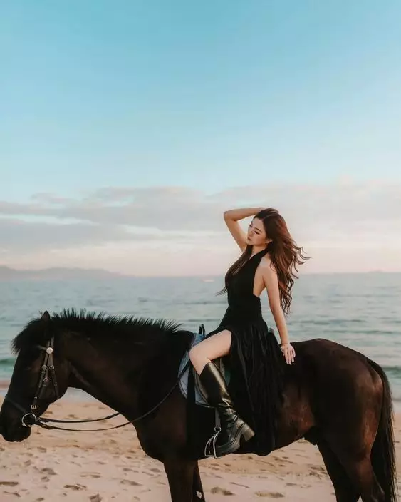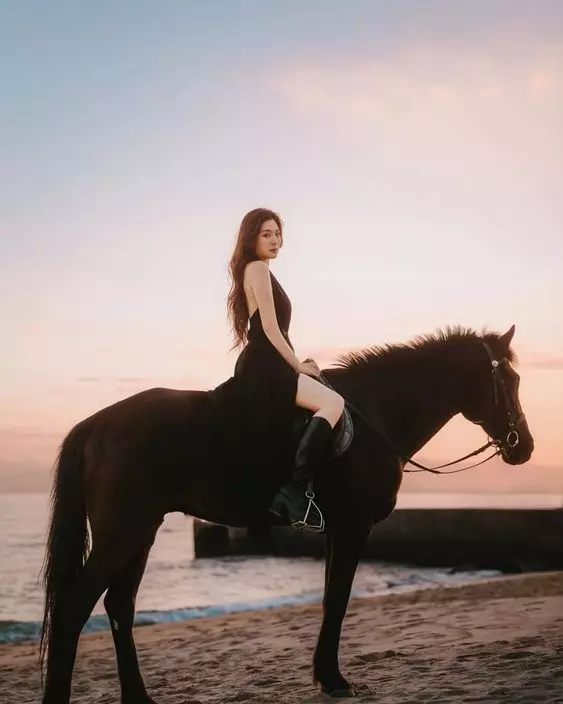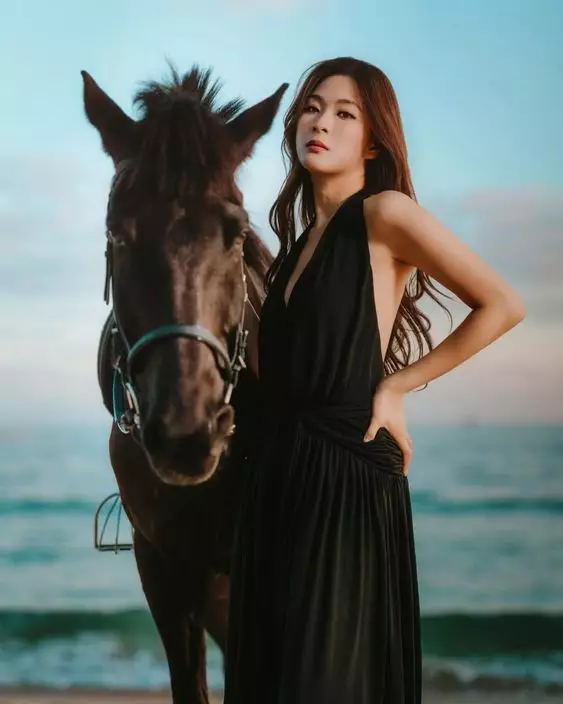 現年26歲的《東張西望》女神陳懿德(德德),日前在社交平台晒出與駿馬的型格合照迎馬年。她身穿黑色低胸高衩長裙配長靴,大騷纖腰美腿,在馬上擺出多個甫士,女人味滿瀉。