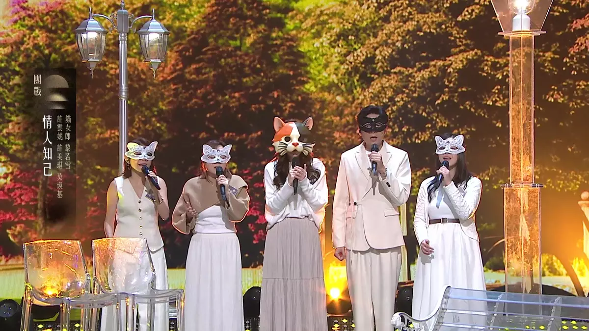 至於由隊長許雲妮、莫煥基、黎若雪、許美琪及「貓女郎」組成的《情人知己》,則採用了歌舞劇的形式呈現歌曲,四名組員除戴上「貓眼面罩」配以「貓女郎」造型,整個表演更是「淚水缺堤」,眾人由綵排到正式表演到表演完講感言一刻,均輪流喊個不停,最終婉婉要出動一整盒紙巾讓五人抹眼淚,十分搞笑。莫煥基笑言許美琪是五人之中最喊得一位:「美琪真係好易喊,我哋畀咗個花名佢叫做『喊包琪』,因為佢差唔多每一次練習,都整喊晒我哋。」美琪則感性回應:「最尾嗰part我唱到自己都喊,因為第一句係『友情如仍未變』,我知呢個係比賽,可能突然之間各散東西,但係都會記得知己嘅笑聲。」、「我尋晚喊、今朝又喊、晏晝又喊,我就嚟冇力喊喇。」對於這個「淚之表演」,評審們讚不絕口,肥媽:「感情拿捏同團隊精神我都好鍾意,你睇我啲廁紙就知啦,係咪先?」海兒:「你哋嘅感情真係好真摯,acting都好真,everything好from heart。」谷婭溦:「最後美琪嗰度touching到我,你最後嗰幾句我入到成件事。」