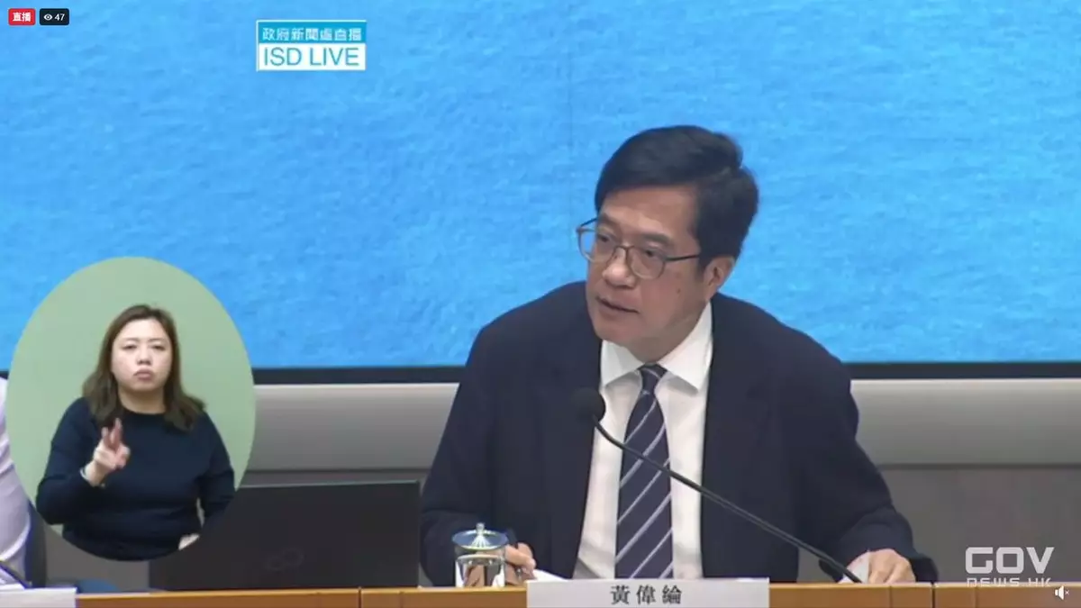 財政司副司長黃偉綸交代大埔宏福苑長遠居住安排方案。政府新聞網直播截圖