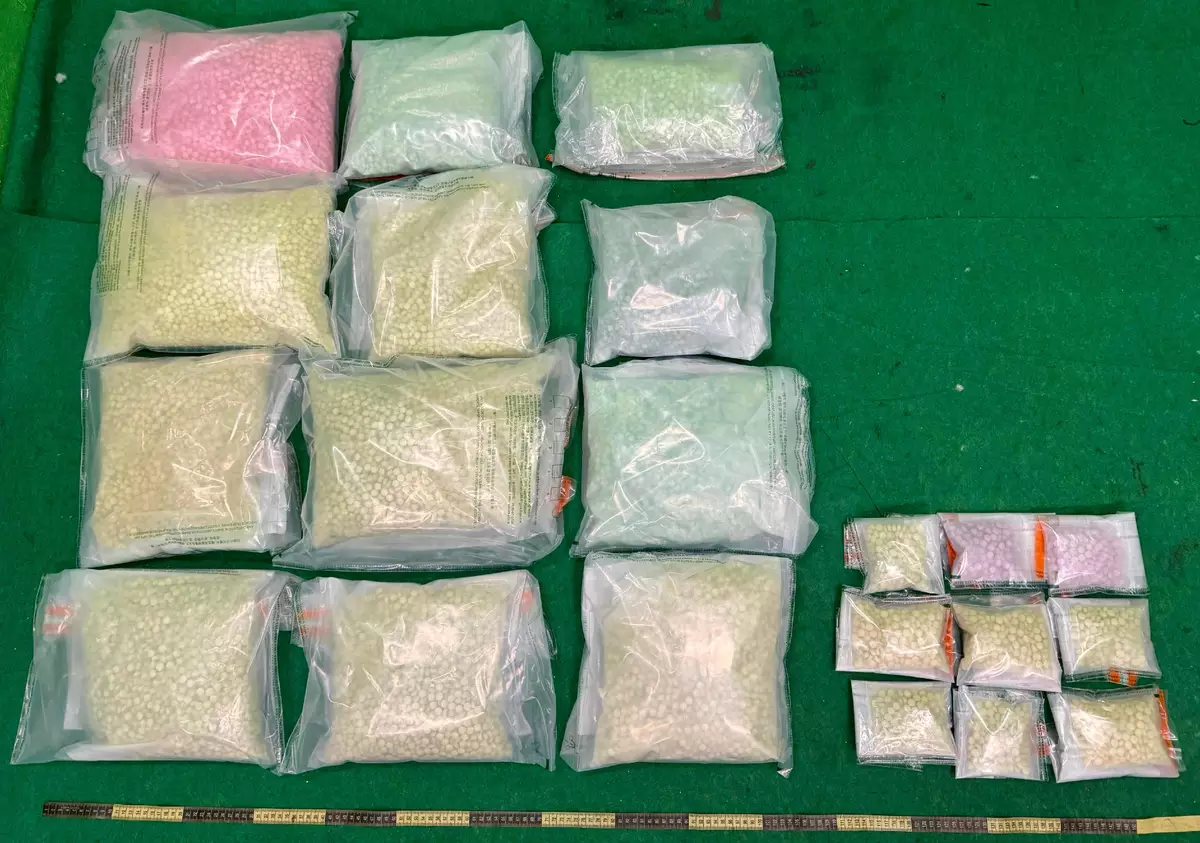 香港海關於機場檢獲約735萬元懷疑搖頭丸。政府新聞處圖片