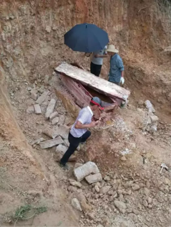 日前東莞黃江鎮田心村有工人在施工時發現一座古墓,並且挖出一副棺材,有村民開棺之後發現屍體沒有完全腐爛,面容竟然還清晰可見。考古專家初步鑒定棺材已有4百年的歷史,墓主可能是一位僧人。