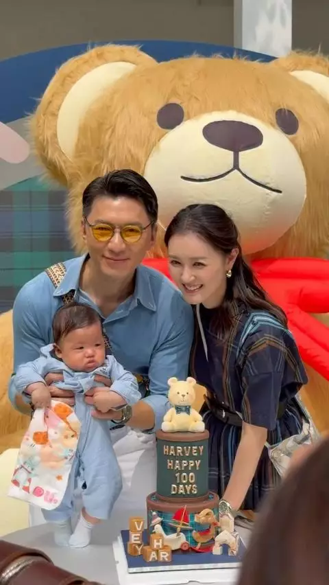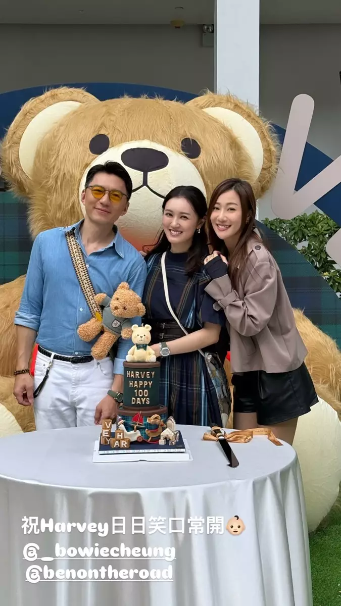 張寶兒在IG Story轉發百日派對當日來賓的照片,可見派對以熊仔做主題,現場擺放了一個巨形熊仔做背景,蛋糕亦是熊仔造型,還有多個掛上多張袁氹氹初生寫真照及全家福的藍白色氣球,好有心思!在切蛋糕環節,張寶兒負責執刀切,而袁偉豪則將細仔抱在懷內,但袁氹氹卻皺着望向鏡頭,可愛又搞笑!