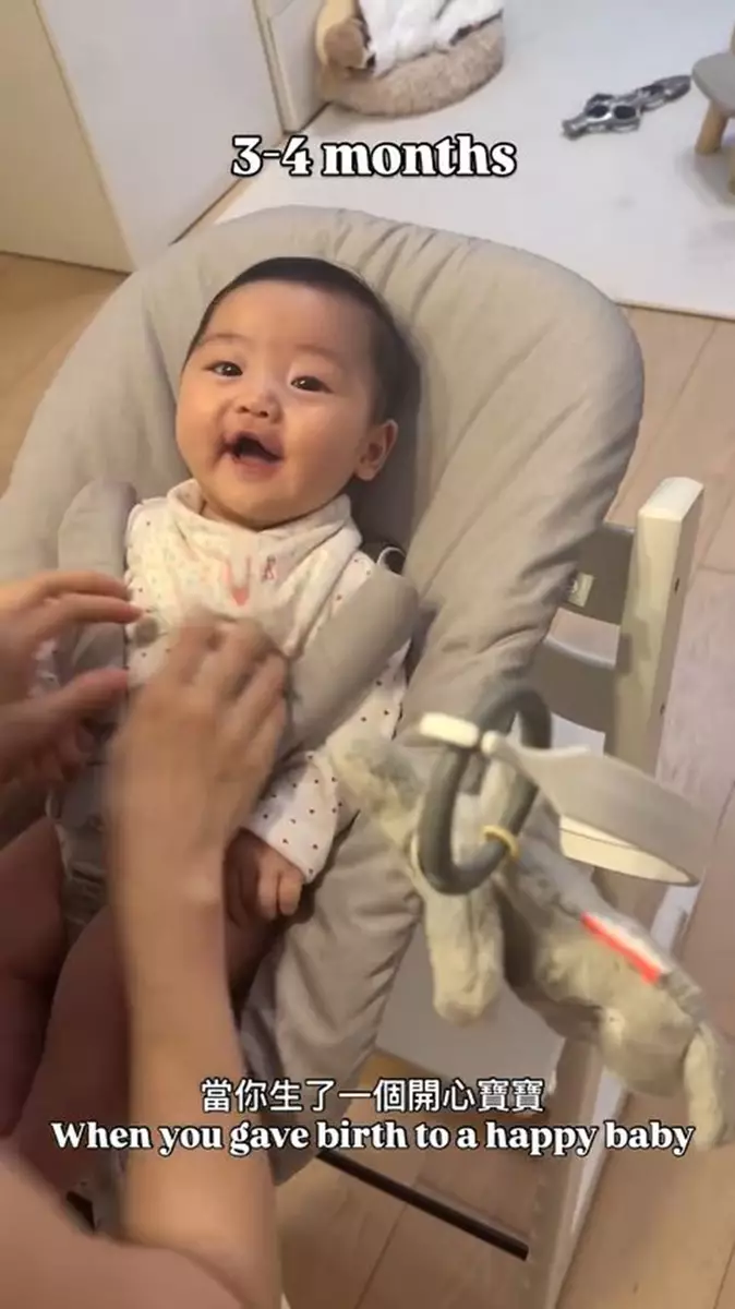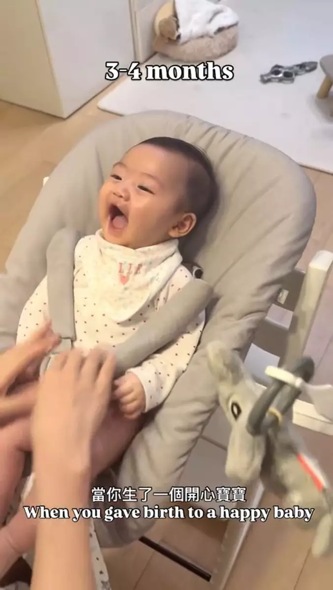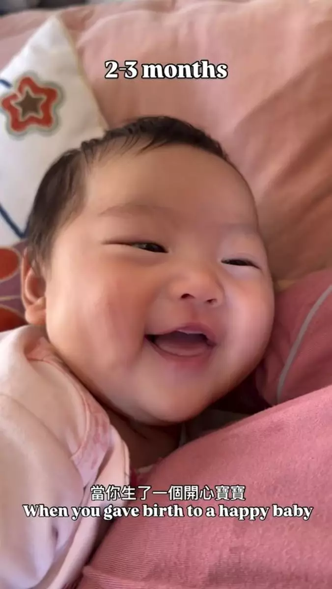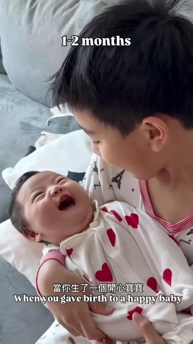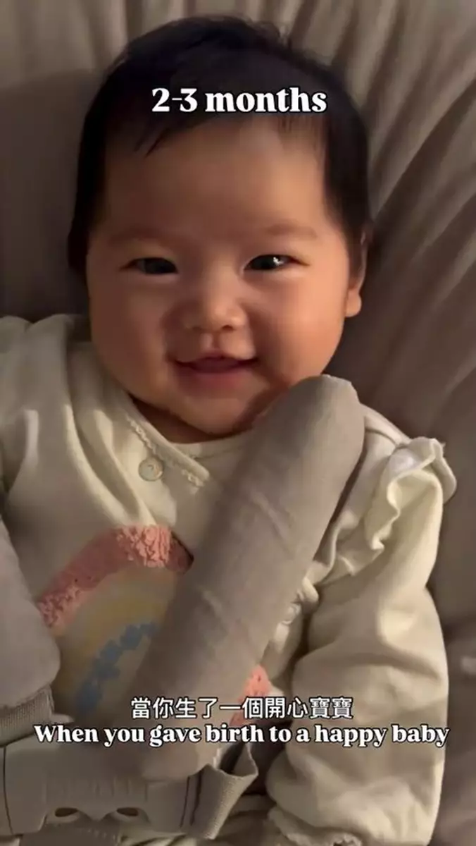 影片中可見,B女臉圓圓又眼仔碌碌,從初生到現在接近4個大一直充滿笑容,無時無刻都在笑,連睡着都會不其然彎起嘴角笑,非常可愛,難怪Coffee稱呼囡囡為「開心果」,她又表示生了一對仔女後可以肯定性格是天生的,「以前彥彥應該去到幾個月後才開始懂得笑,但妹妹是由出生後就開始按捺不住由心而發地笑,一個是古靈精怪寶寶一個是快樂寶寶,不過兩個也有各自各的可愛!兩個我也很愛,每天跟他們兩個在一起真的會不知時日過,就這樣兒子的新年假期就快過了。」