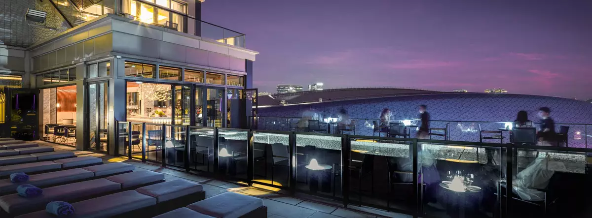 Jin Bo Law 坐擁開揚維港景色,毗鄰啟德體育園,供應一系列創新調酒,刺激味蕾和想像力,絕對是享受微醺時光的首選。全新「香港傳奇時光」酒單帶領酒店賓客及雞尾酒迷一同穿越時空、品味屬於香港的獨特風味。