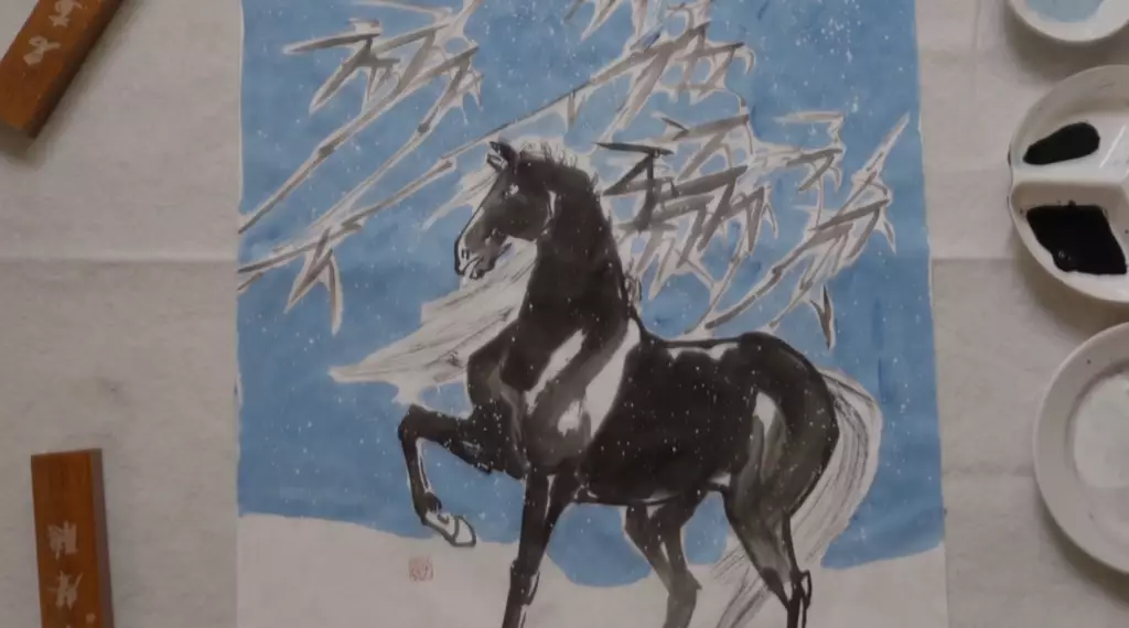 在中國農曆馬年新春之際,奧莉加特意創作了一幅寫意風格的駿馬圖,以此向中國朋友送上祝福。「在中國文化裡,馬是速度和成就的象徵。」奧莉加說,「我想,這一年將充滿好的創舉、成果和有趣的事情。這是我對中國朋友的祝福,也是對我們自己的祝福。」