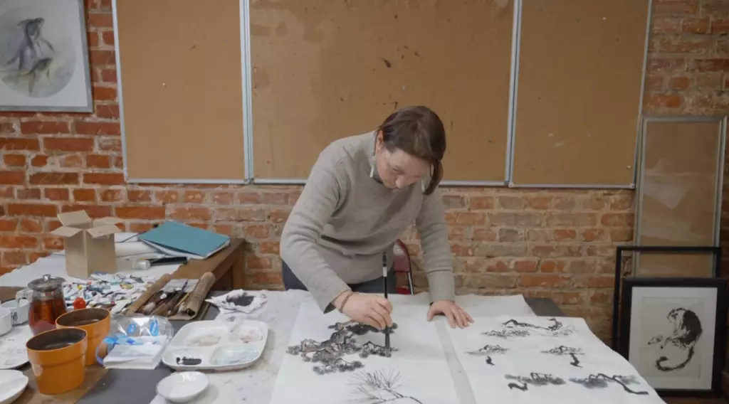 奧莉加喜歡中國畫所蘊含的哲學,以及同等重要的、無法言傳的意境。此前,奧莉加是一名設計師。她的啟蒙老師是俄羅斯著名中國畫畫家尤利婭·納烏莫娃,她是一位曾在中國受過正規中國畫教育的藝術家。「我給自己找了一位老師,她是當時能找到的唯一一位掌握完整中國繪畫知識的人。」奧莉加回憶道,「在老師的幫助下,通過書法和繪畫,我沉浸到了中國文化中,我非常喜歡這個過程。」