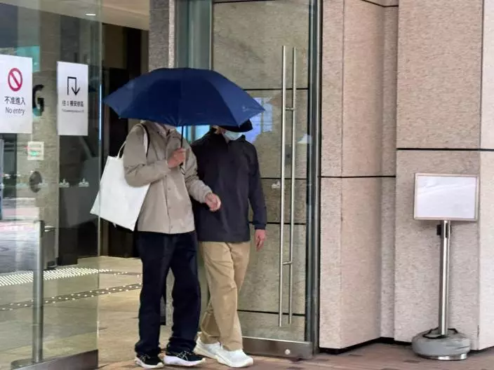 被告梁佳樂(右一)在親友陪同下離開法院。巴士的報記者攝