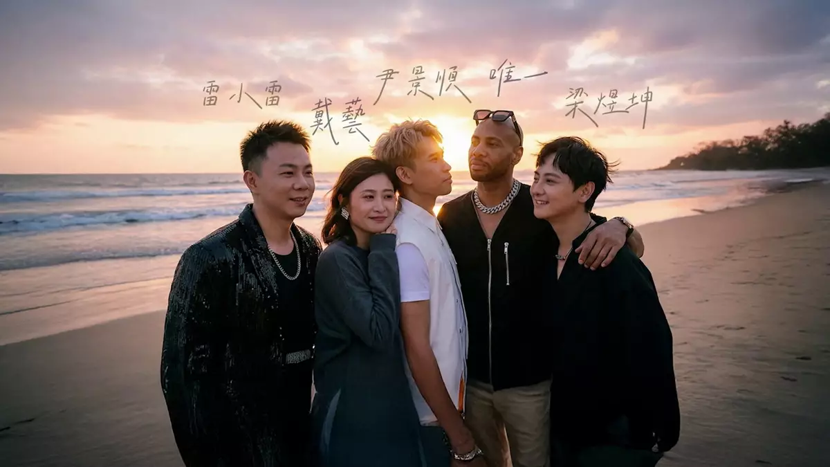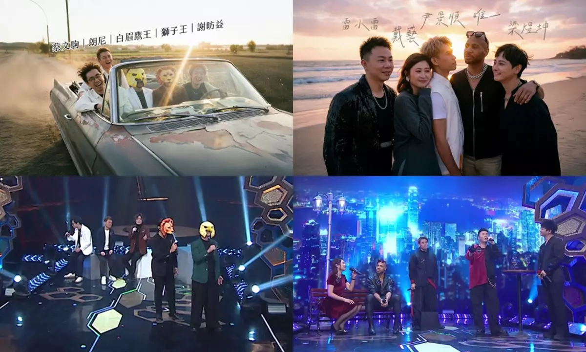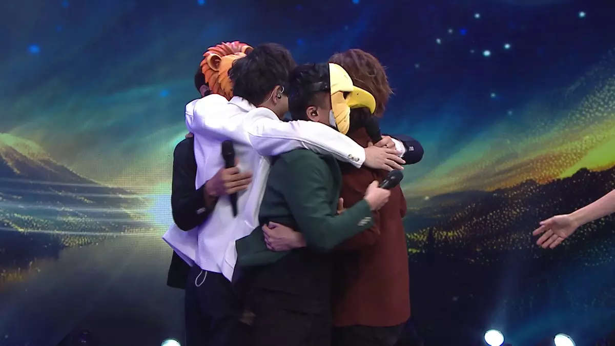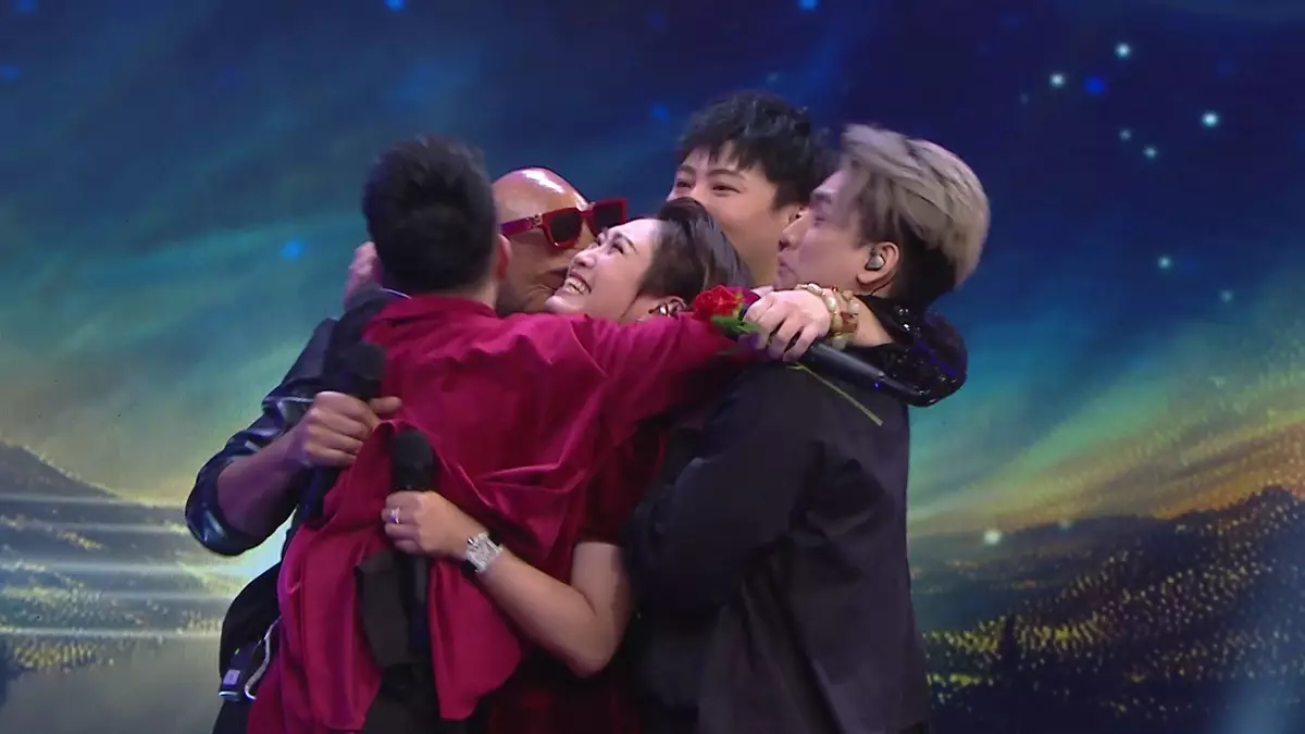 五人合唱後攬作一團。