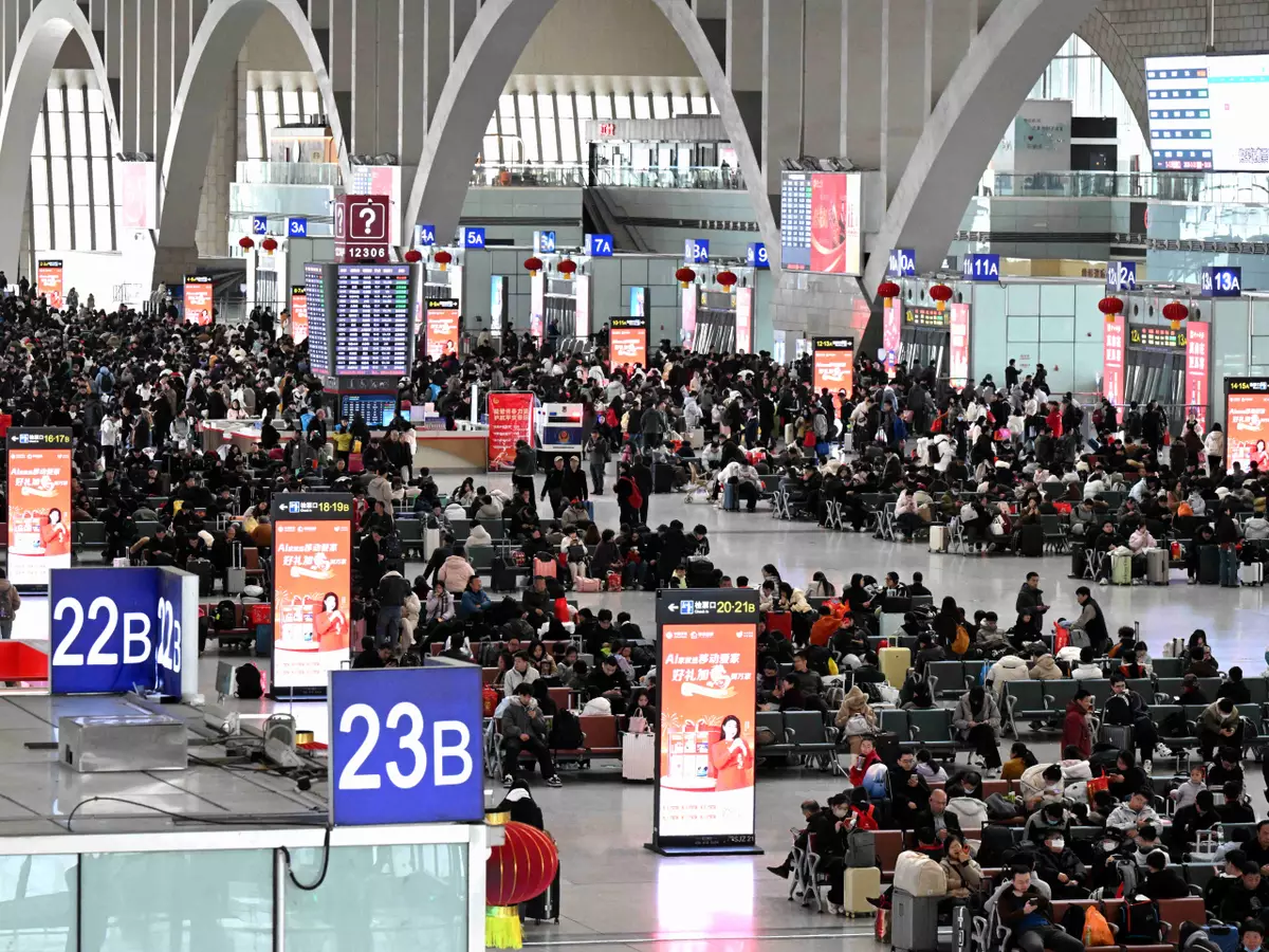 今天是內地春節假期最後一天,全國鐵路迎來返程客流高峰,國鐵集團預計星期一發送1850萬人次旅客。