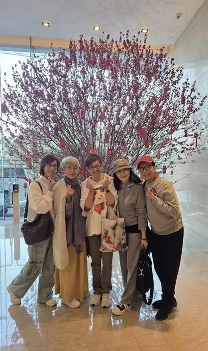 日前林漪娸在社交平台分享合照,席間除了陳敏兒外,還有廖安麗、麥麗紅及賈思樂。相中所見,陳敏兒一頭白髮,披上外套與圍巾保暖,面帶微笑站在年花前合照,精神不俗,氣色比早前明顯好轉。林漪娸更感性留言,指彼此相識40多年,友情深厚:「這種友情不能用言語去表達!」